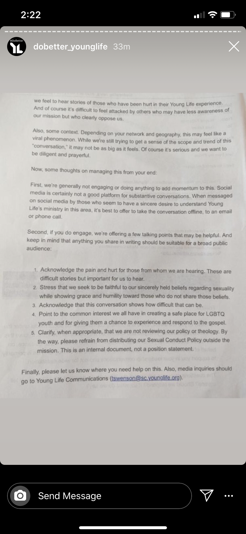 Young Life’s Beliefs and Policies regarding Homosexuality
