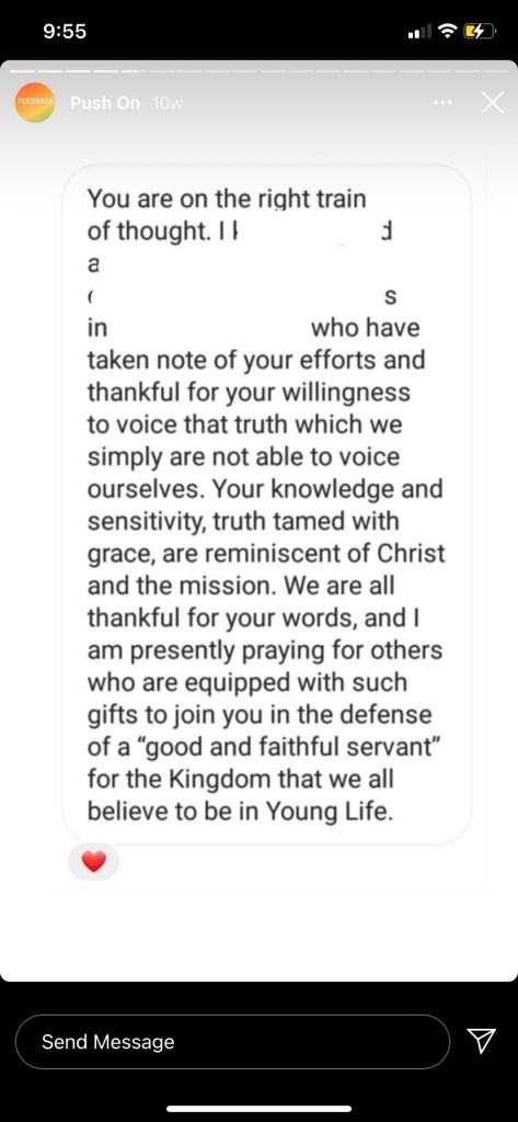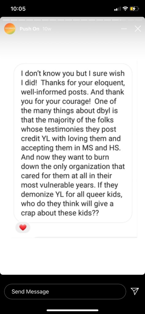 On August 22, 2020, Jenn Pepper wrote, “I’ve been involved with YL for a decade and it has been formative for me in my growth of Christian theology (because of amazing training classes at the seminary level)…”