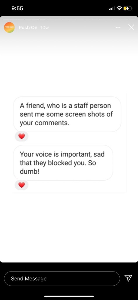 Jenn Pepper: A few. I didn’t share about myself much but more broadly on the topic. My personal life I only shared with select few staff that I considered friends. Not because I was told to. I just didn’t want to, and only have now because it felt like it was time to do so.